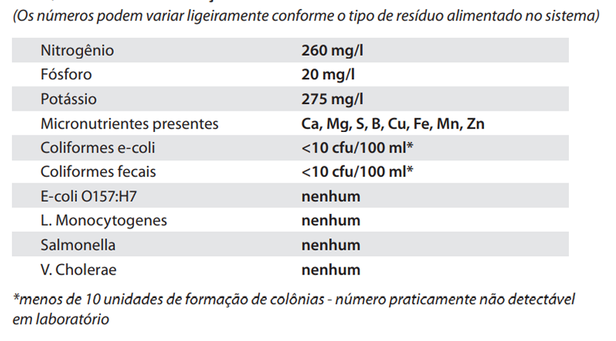 O é um fertilizante líquido de alta qualidade. Quando aplicado, o fertilizante pode acelerar o crescimento das plantas e aumentar sua resistência a doenças. O fertilizante é basicamente a descarga do tanque do biodigestor. Esse líquido, é o resultado de um longo processo no biodigestor e contém um alto teor de macro e micronutrientes na forma adequada para ser absorvido rapidamente pelas plantas. A presença de macro e micronutrientes torna o Fertilizante Homebiogas uma ótima opção para a maioria dos jardins e agricultura em pequena escala. Apesar de oferecer muitos benefícios para as plantas, o Fertilizante Homebiogas não melhora as propriedades do solo. Portanto, ele deve ser combinado a algum tipo de adubo para o solo para ter melhor desempenho.